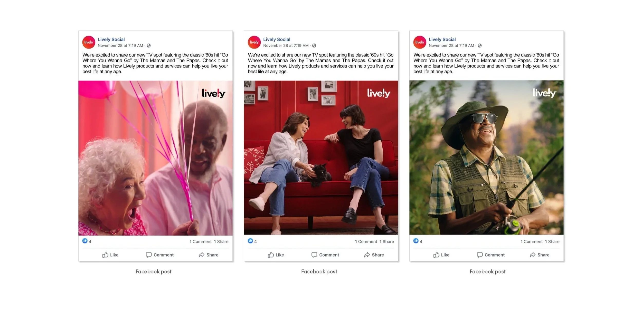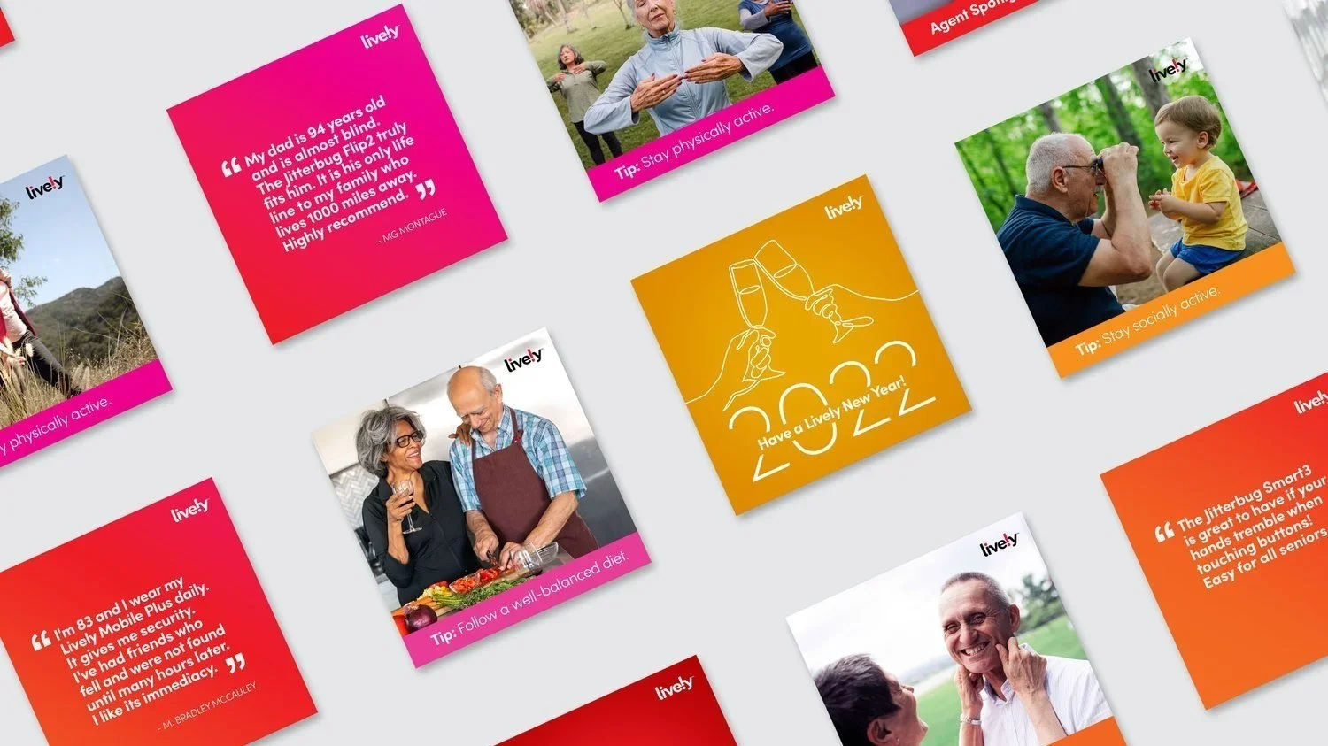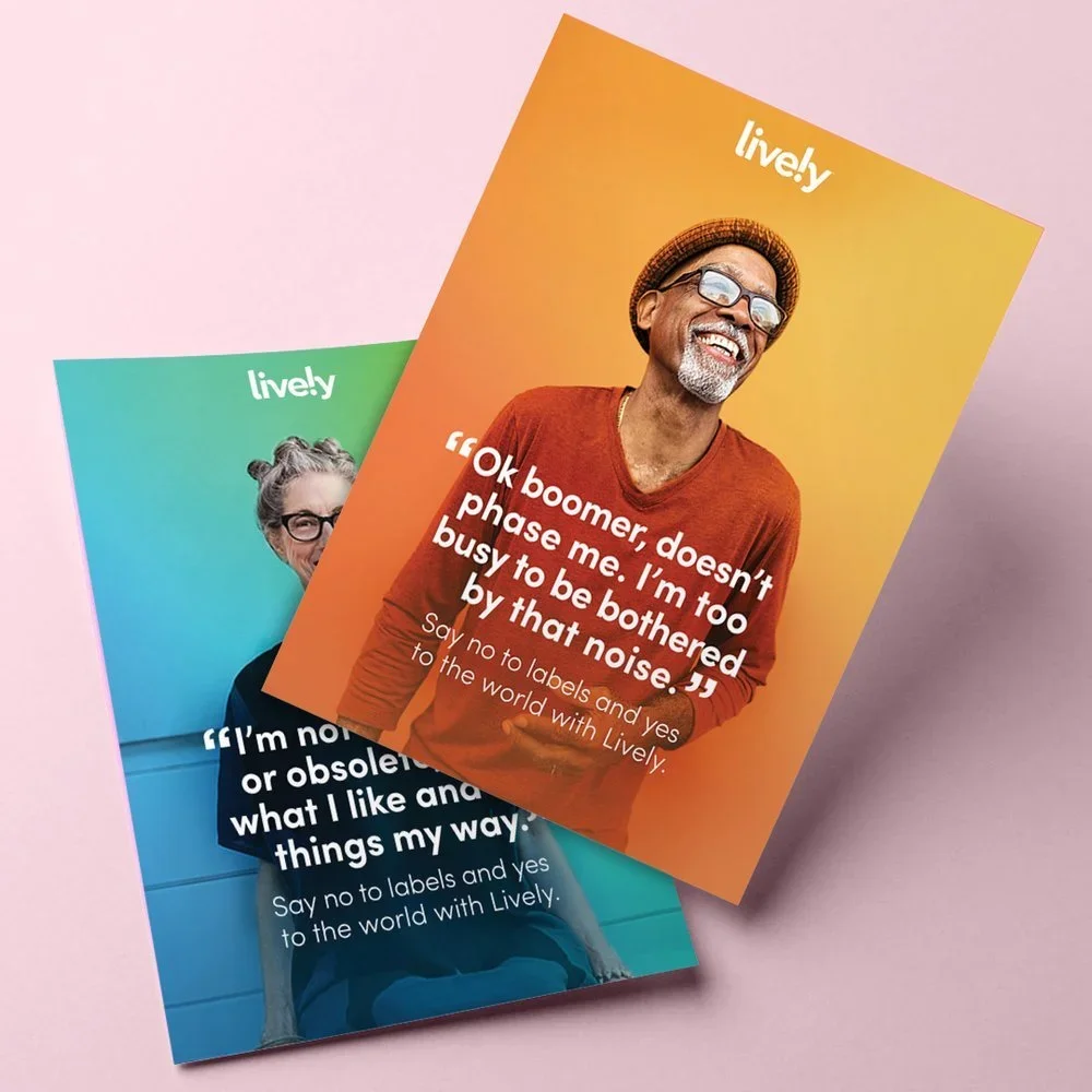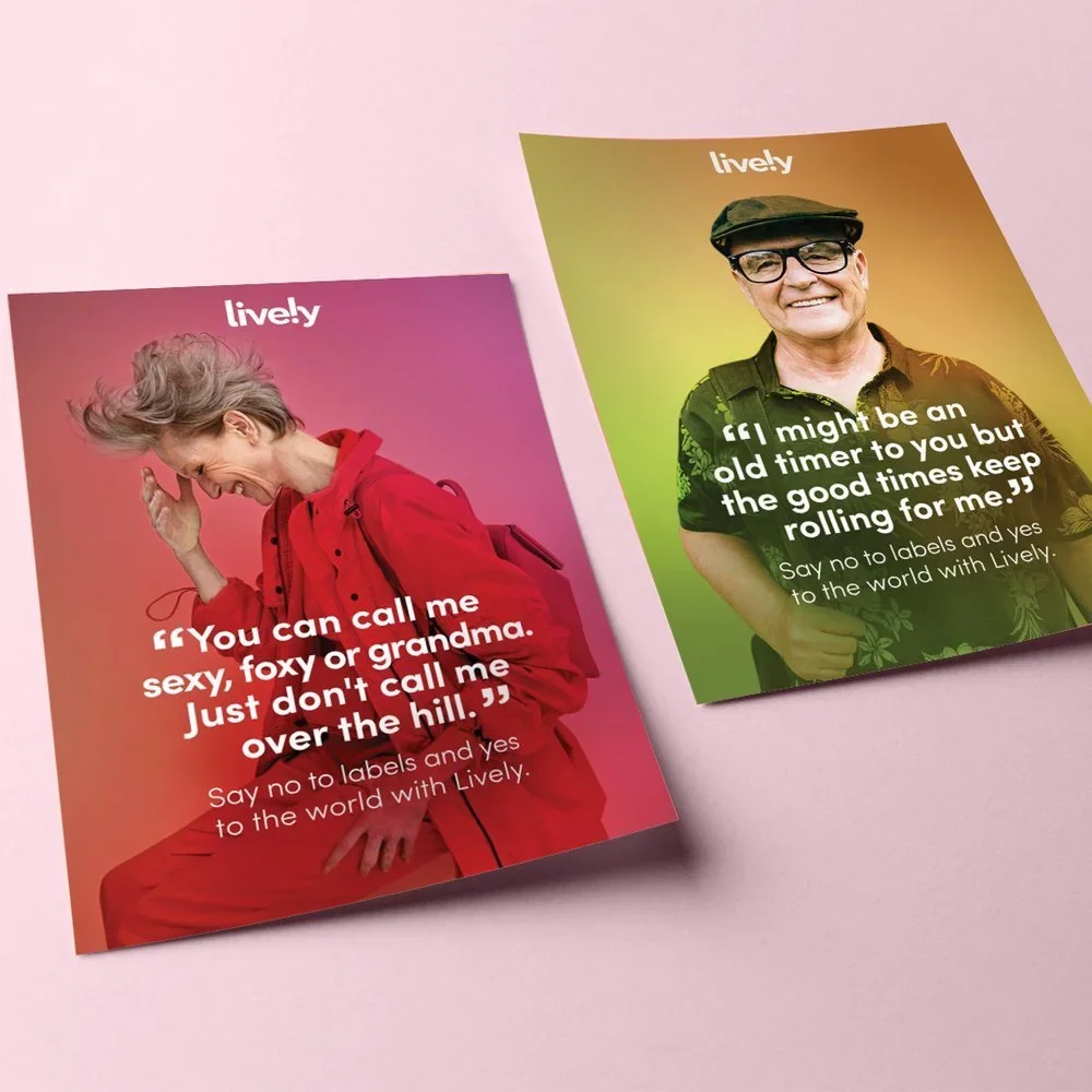 The campaign introduced a warm, energetic world where older adults were the main characters, living fully and freely. Each scene was designed using one of Lively’s brand colors to build a strong, vibrant mood around every story. The work lived across TV, social, digital, and print, building a unified experience that felt fresh, honest, and fun.